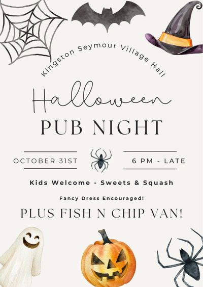 Join us for a spooky evening for Halloween! We'll start at 6pm so bring the kids, fancy dress positively encouraged! We also have a fish n chip van coming, grab yourself a delicious fish supper, eat it at the hall or take it home, stay for a drink or just come to grab some food, we look forward to seeing you!